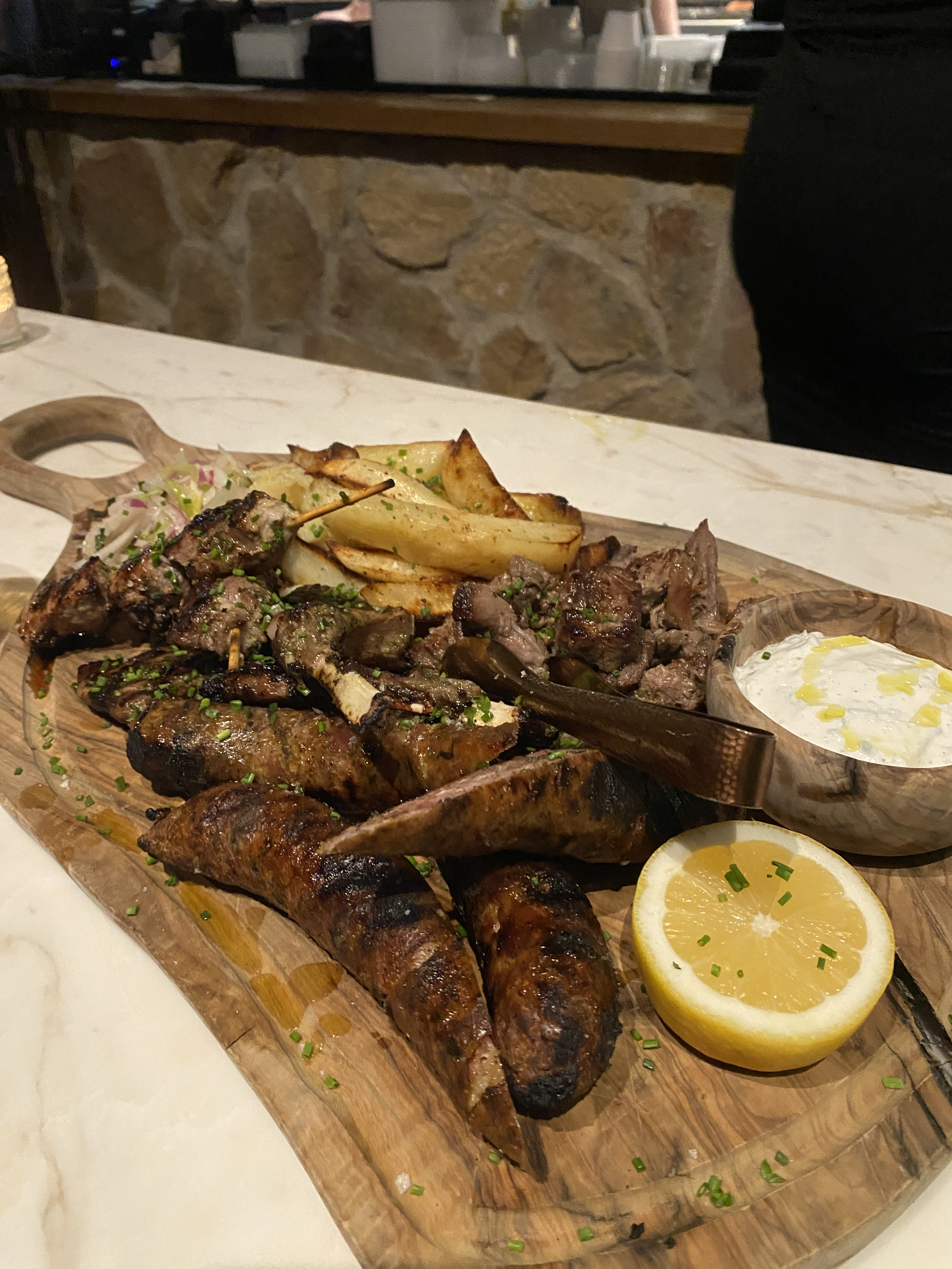 Spit-roasted lamb has long marked feast days and seasonal thresholds, especially Tsiknopempti, the final great meat celebration before Lent. Late winter sits between abundance and restraint, and lamb—symbolic of renewal and pastoral life—belongs squarely in that moment.