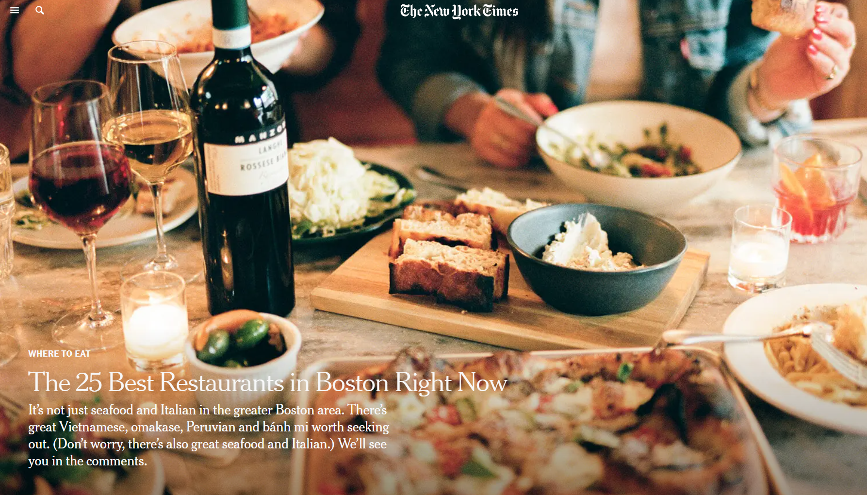 The New York Times: The 25 Best Restaurants In Boston Right Now Apr 9 Written By Lily Pillsbury Read the full article Lily Pillsbury